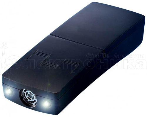 Ручной многофункциональный отпугиватель собак предназначен для защиты человека от укусов злобных собак. Он держит собаку на безопасном расстоянии, используя как излучение в направлении собаки ультразвуковых волн, так и вспышки сверхъярких светодиодов. Ультразвук неслышен человеком. Отпугиватель может работать и как мощный фонарь - для этого предусмотрена отдельная кнопка. Также прибор имеет функцию тренировки собаки для запоминания ею голосовых или знаковых команд хозяина.