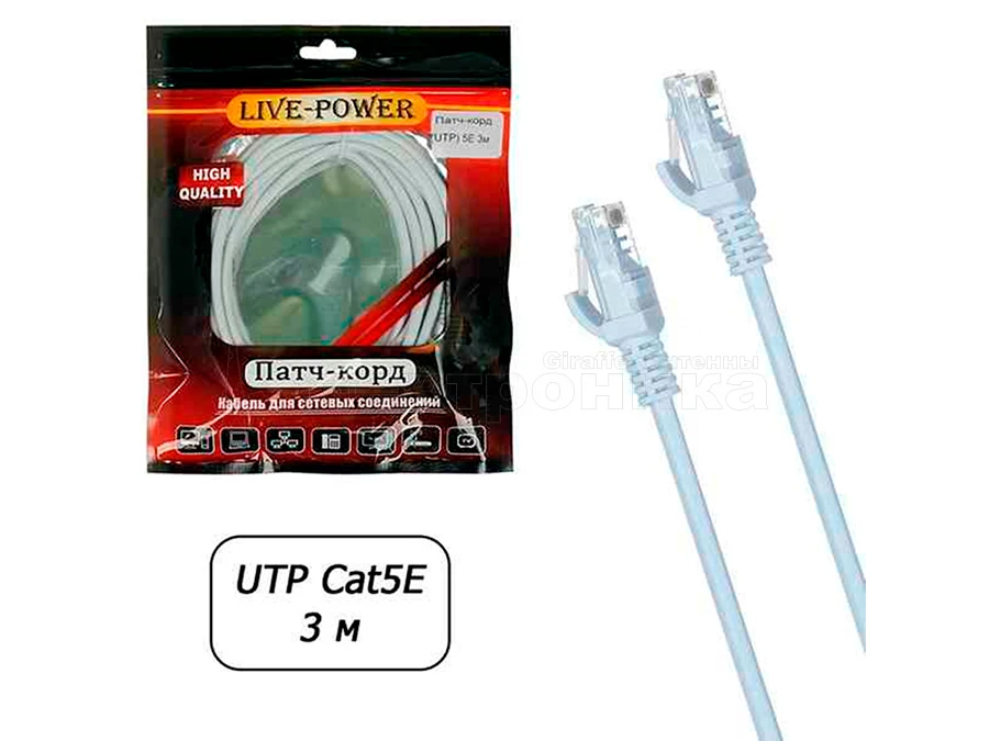 Сетевой кабель UTP RJ45 Cat 5E Live Power, 3м Ethernet LAN кабель патчкорд 8-жильный шнур RJ45-RJ45