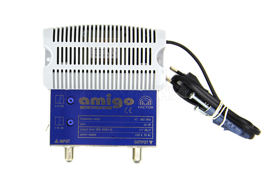 Усилитель AMIGO P доступен в двух версиях с пассивным обратным каналом (5<30МГц и 5<65МГц) или без обратного канала. Параметры усилителя и его стоимость позволяют создавать эффективные, широкополосные, малобюджетные кабельные сети.